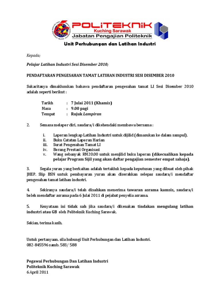 Surat Pengesahan Pelajar Politeknik New Letter Website
