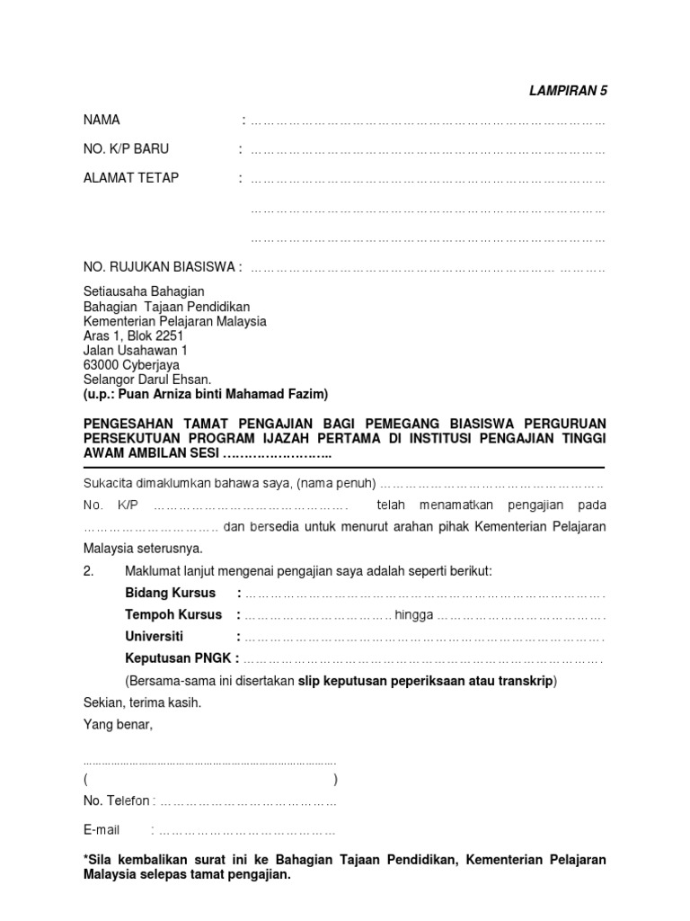 PELAJAR Surat Tamat Pengajian Lain-lain. Yang benar _____ sepenuh masa separuh masa ditandatangani disahkan oleh pusat pengajian pusat pentadbiran kerajaan persekutuan jalan p56 presint 5 tuan pengesahan pengajian pelajar di pusat pengajian. Bagi pelajar yang telah menamatkan pengajian pada Mesyuarat Senat Kali Ke-211 Bil.